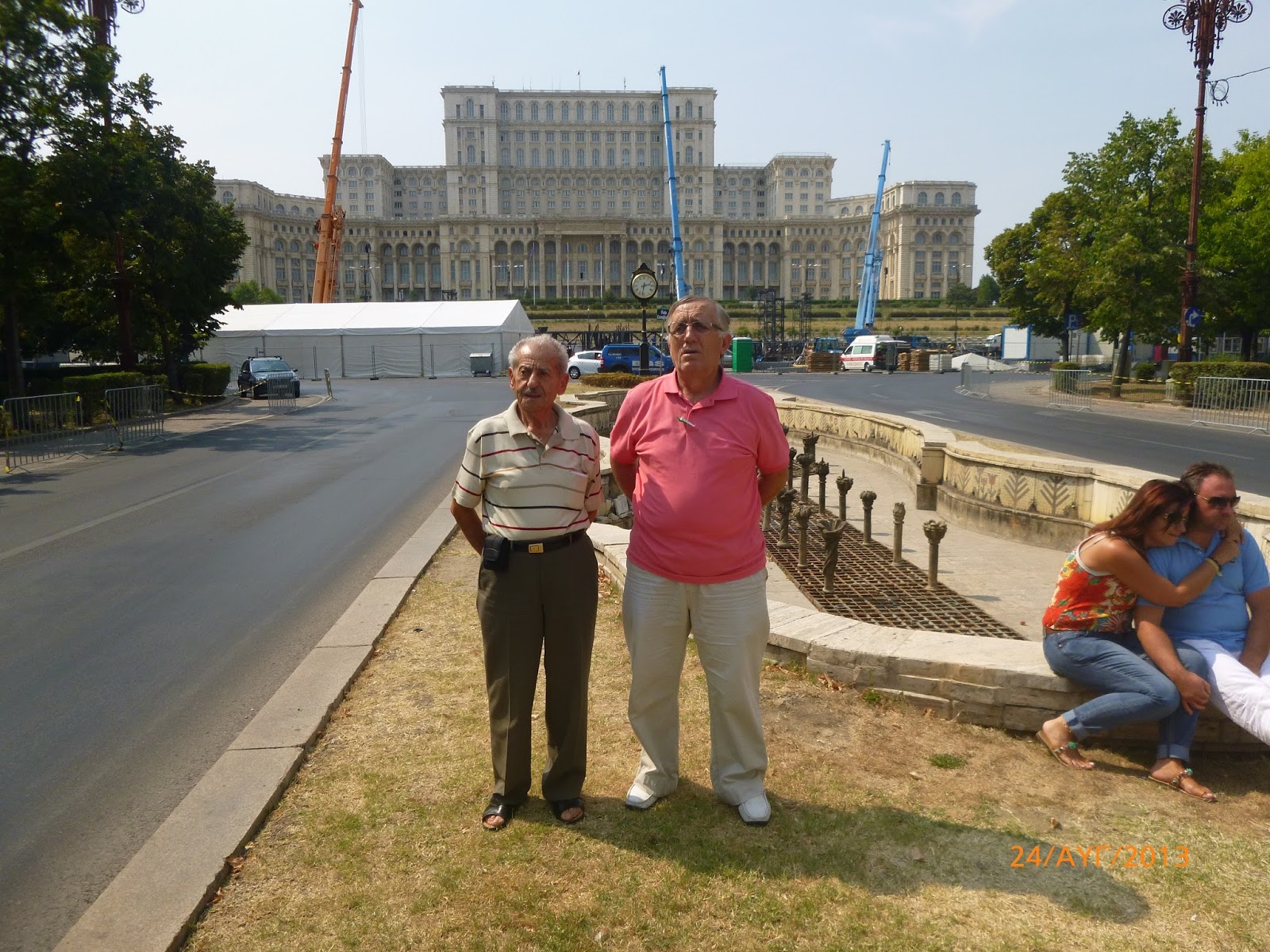 Τακτοποίηση φαγητό ξεκούραση , βραδυνή βόλτα στο Βουκουρέστι , στην πανέμορφη και αχόρταγη πόλη - πρωτεύουσα της Ρουμανίας με το εκπληκτικό κτήιο -κατασκευή ΤΣΑΟΥΣΕΣΚΟΥ ,από 1985-1989 το σημερινό ονομαζόμενο PALATUL PARLAMENTULUI , το δεύτερο σε επιφάνεια με 364.000 τ.μ. επιφάνεια κτησμάτων -κτίριο στον κόσμο , μετά το Πεντάγωνο στις Η.Π.Α. - Επίσης την επομένη 24-08-2013 τρίτη 3η Ημέρα της εκδρομής μας ,... επισκευτήκαμε το Μουσείο Χωριού μοναδικό στο είδος του , τις πολλές μεγάλες λίμνες της πανέμορφης καταπράσινης πόλης με τα επιβλητικά κτήσματα , την μεγάλη κεντρική πλατεία , το δρόμο με το Ατενέομ , την Αψίδα του Θριάμβου , την Στρατιωτική Ακοδημία , το παλάτι του Κατακουζινού , το παλάτι και τα σπίτια κατασκευές Τσαουσέσκου , το νεκροταφείο μνημείο πεσόντων Ρουμάνων από τον δικτάκτωρα Τσαουσέσκου , το άγαλμα των αεροπόρων , τους δρόμους νεολέας το βράδυ (διασκέδασης κ.α) και πολλά άλλα αξιοθέατα όπως το Πατριαρχείο κ.λπ. .- Διανυκτέρευση-φαγητό στο ξενοδοχείο RIN CENTRAL BUKUREST , 55 TRAIAN STREET BUCHUREST ROMANIA Tel. 2033846448 .- Στο Βουκουρέστι είχαμε δύο 2 διανυκτερεύσεις .-