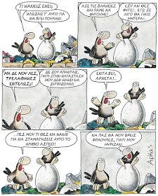 Τότε ο τρίτος πετάγεται από τη θέση του πανικόβλητος και φωνάζει: